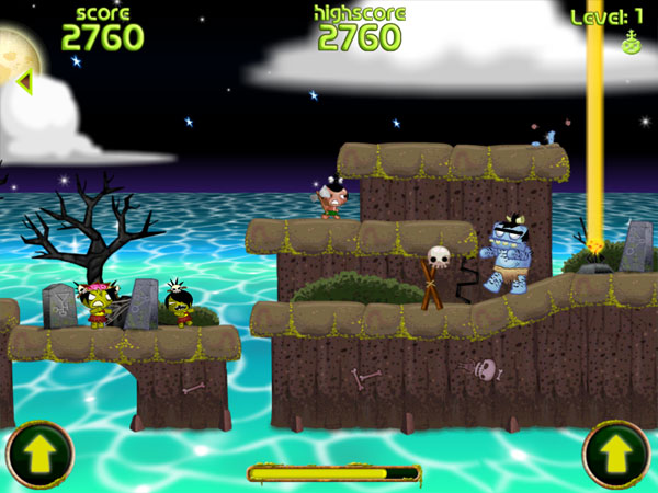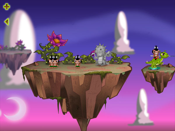 The duties were divided about the same although I have to give Dave extra credit for spending a lot more time designing and balancing the game play (with the help of programmers Robin Habron and Sam Washburn), while I focused on stepping up the art style, animation and sound quality (including awesome music loops created by Grammy-winning artist Christopher Tin) for the larger screen of the iPad. All pygmy animations were revisited and made smoother and more elaborate to fit in with the higher resolution environment.